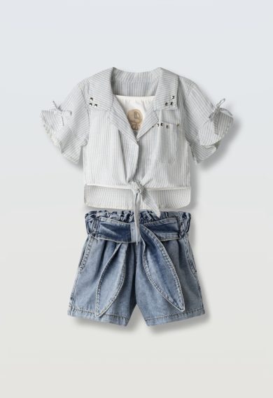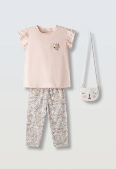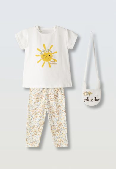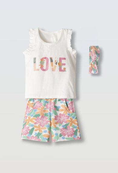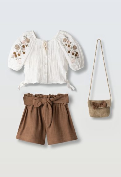 Μπλούζα άσπρη καφέ λουλούδια, σορτς καφέ 30% Πλ 70% Β