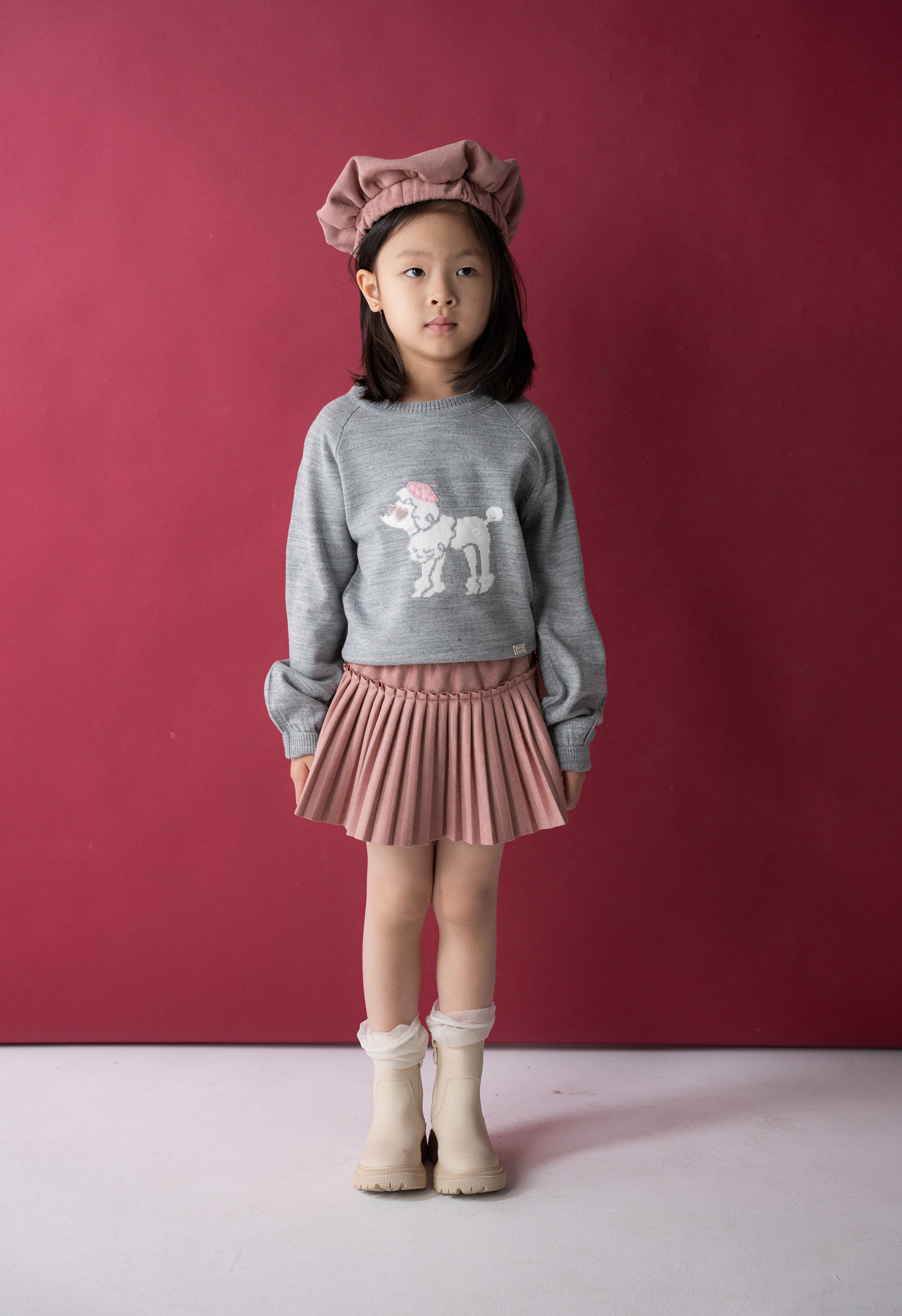 Μπλούζα γκρι πλεκτή, φούστα ροζ πλισέ και μπερές σετ 2τμχ 50% Πλ 50% Β