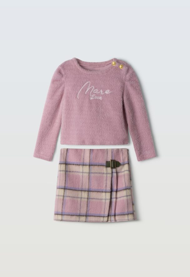 Μπλούζα ροζ-φούστα καρώ ροζ σετ 2τμχ