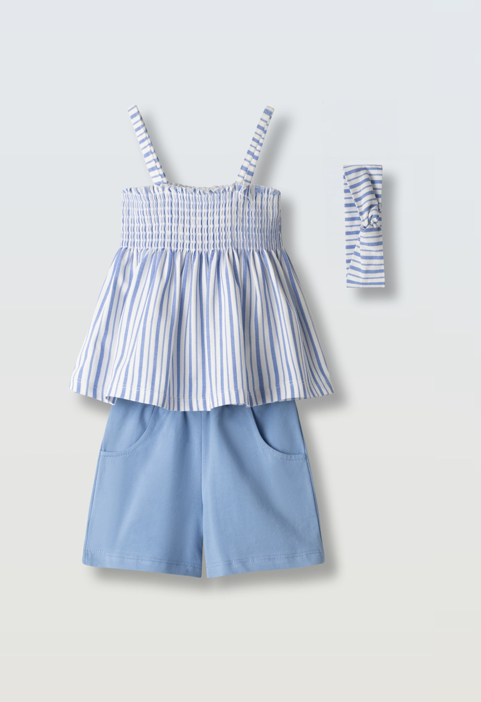 Μπλούζα σιελ ριγέ, σορτς μακό σιελ 100% Β
