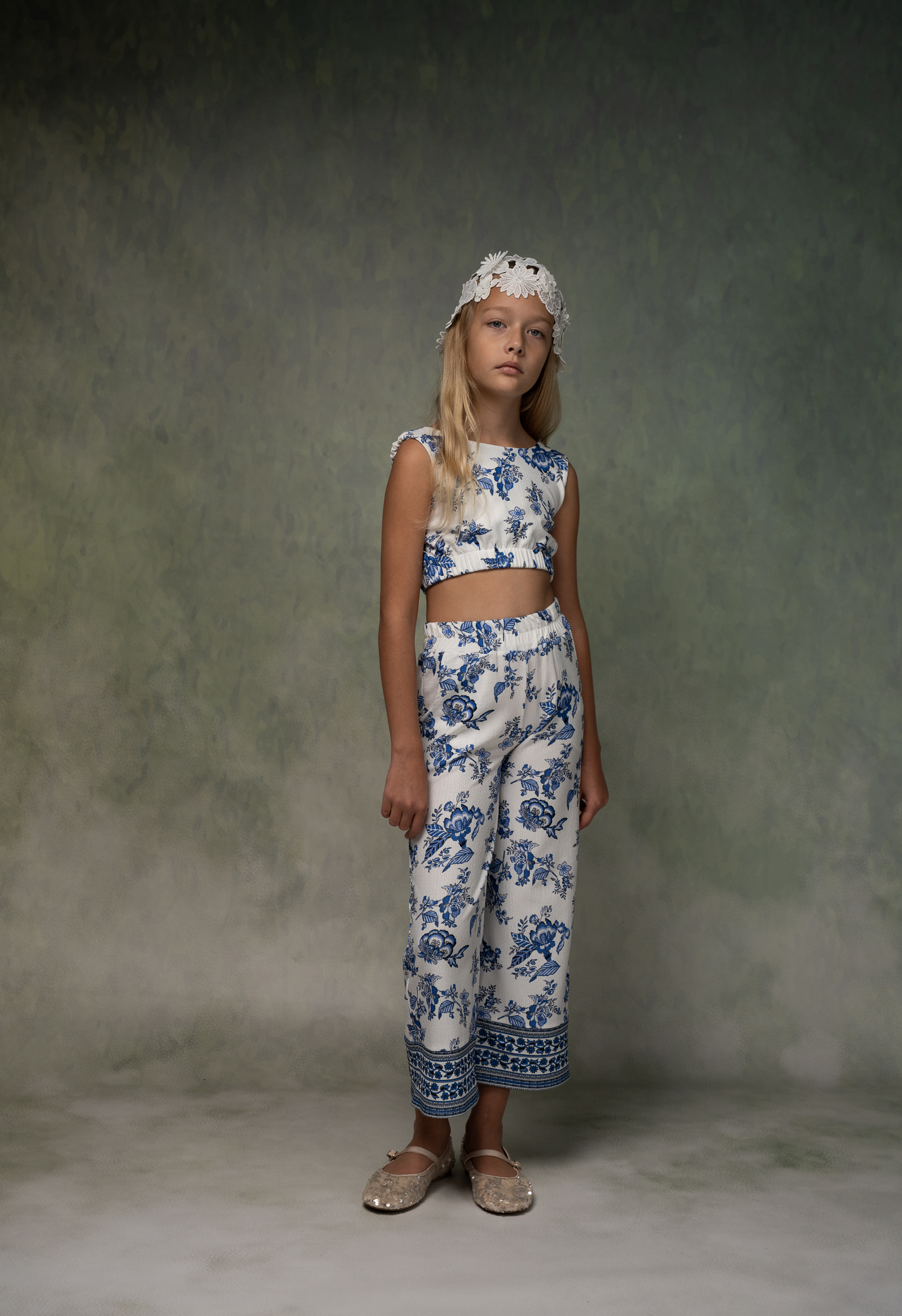 Τοπ σιελ με V ,παντελόνα άσπρη σιελ 50% Β 50%Λ