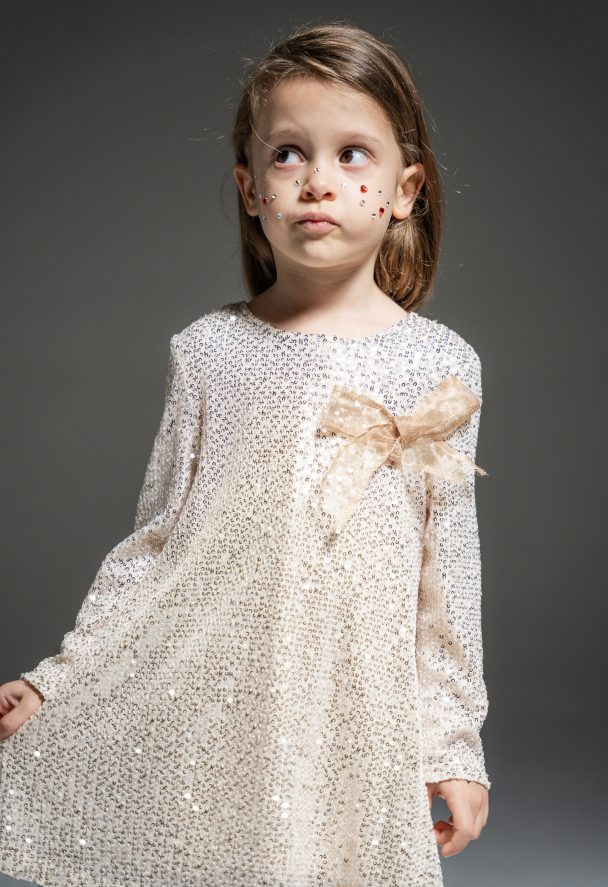 Φόρεμα χρυσό παγιέτες με τσαντάκι και φιόγκο 95% Π 5% S