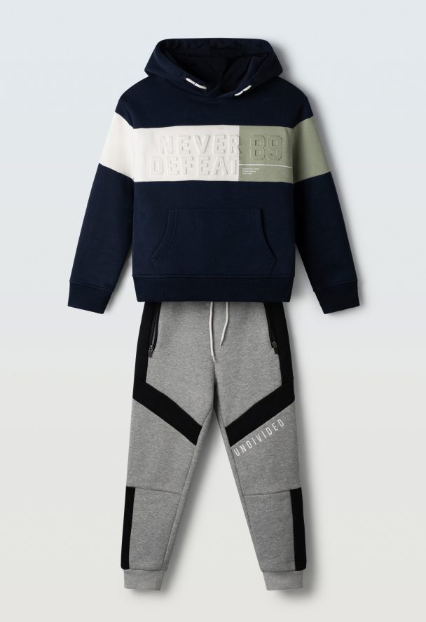 Φόρμα, μπλούζα μπλε ριγέ κουκούλα, παντελόνι γκρι σετ 2τμχ 35% Β 65% Πλ